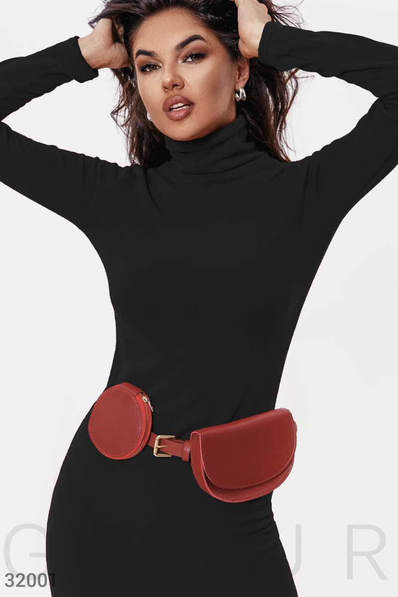 Структурированная поясная сумка круглой формы с компактным кошельком бордового цвета.