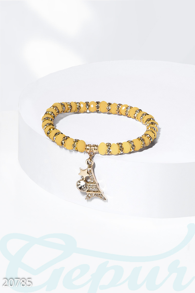 Эластичный браслет из бусин и камней с металлическим декором "Эйфелева башня".
