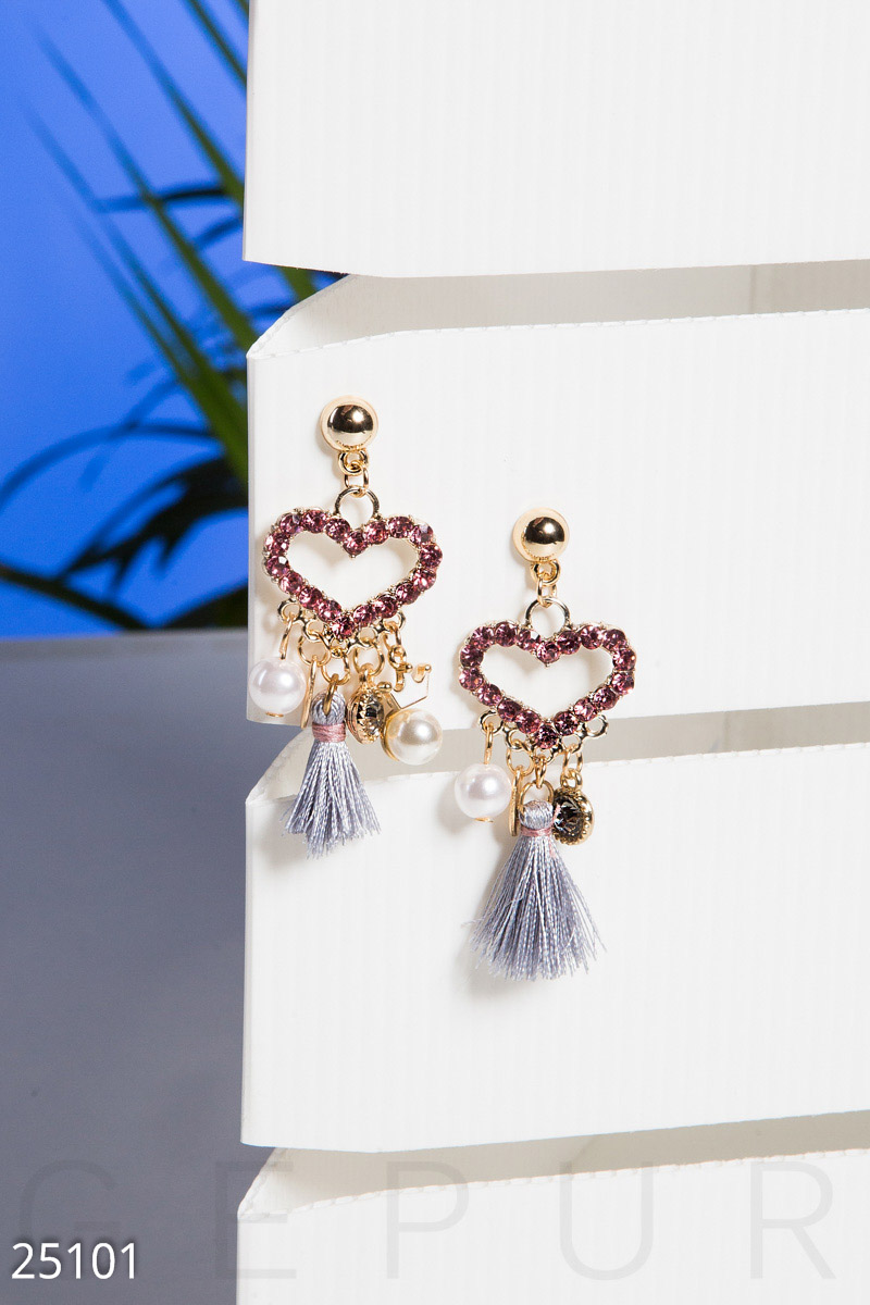 Эффектные серьги-подвески с цветными камнями, бусинами и кисточками.