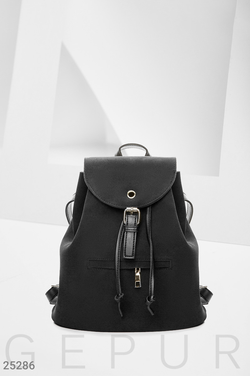 Стильный городской рюкзак из эко-кожи, с клапаном, боковым внутренним карманом, регулируемыми лямками и небольшим карманом на молнии.