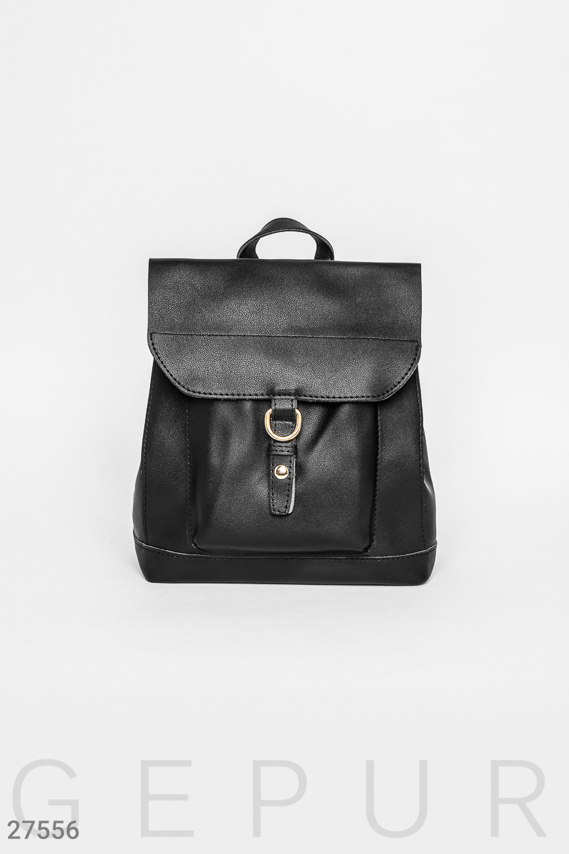 Лаконичный рюкзак-сумка, выполненный из эко-кожи: небольшой накладной карман на кнопке, регулируемые лямки, которые трансформируются в плечевой ремешок.