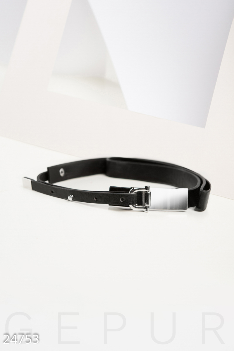 Женский ремень из эко-кожи лаконичного дизайна, дополненный металлическими вставками на пряжке.