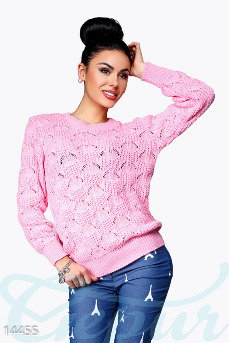 Теплый женский джемпер с эластичной резинкой, выполненный из мягкой ажурной вязки.