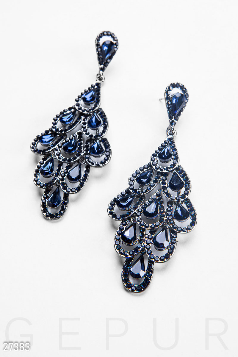 Объемные вечерние серьги-каскад, украшенные цветными декоративными камнями.
