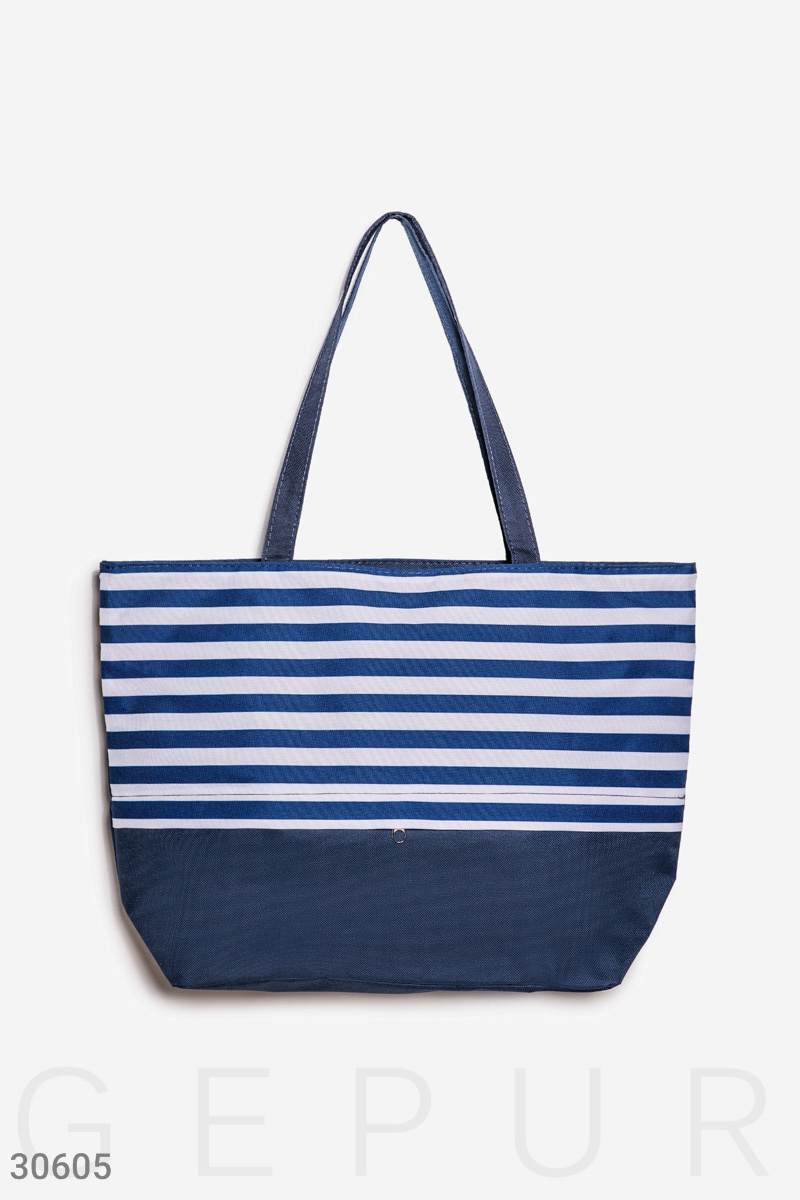 Тематическая летняя сумка из холщовой ткани на подкладе (полиэстер), декорированная стильной полоской, с длинными ручками, одним вместительным отделением и горизонтальным карманом на молнии спереди.