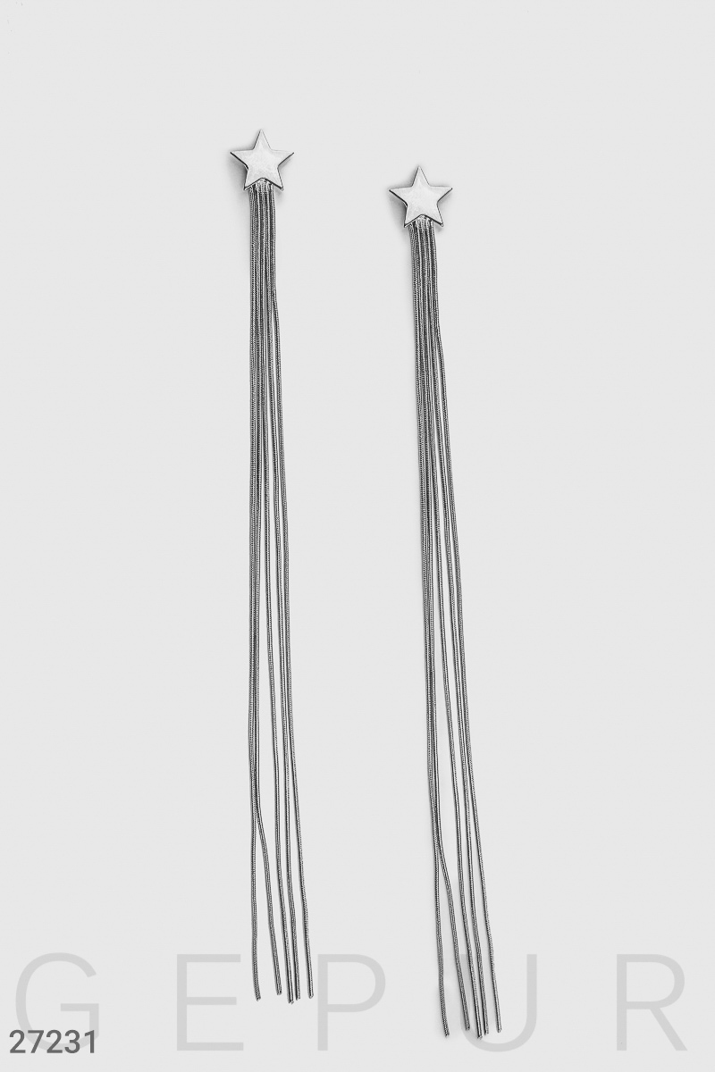 Стильные серьги-шандельеры в виде звезд с застежкой-пусета.