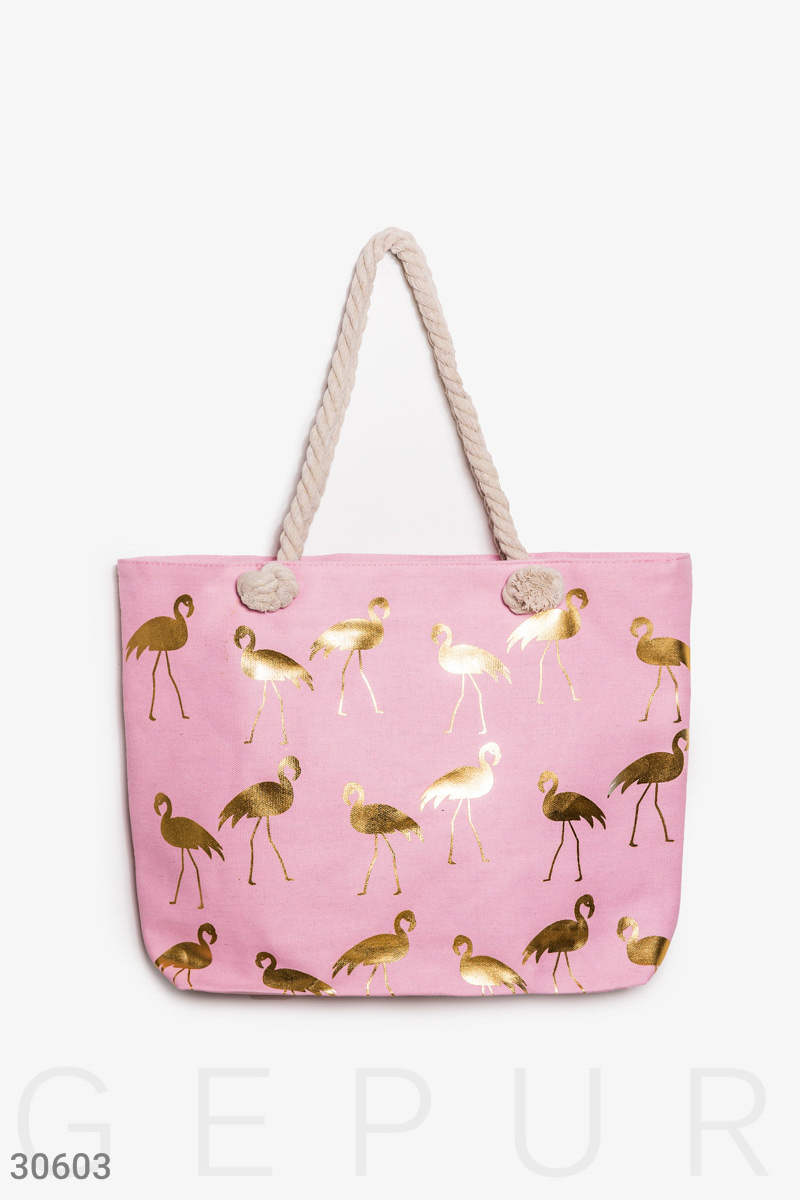 Тематическая летняя сумка из холщовой ткани на подкладе (полиэстер), с практичными ручками-канатами, одним вместительным отделением с боковым карманом на молнии, украшенная ярким фигурным декором.