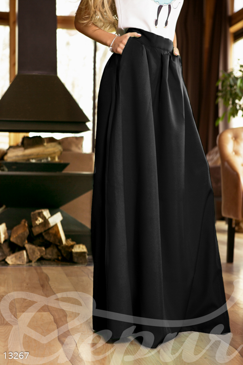 Расклешенная длинная юбка с высокой посадкой, дополненная двумя карманами по бокам.
