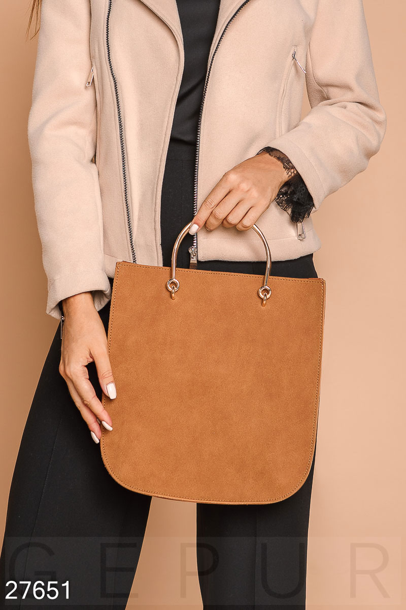 Удобная женская сумка с металлическими ручками, выполненная из фактурной эко-кожи.
