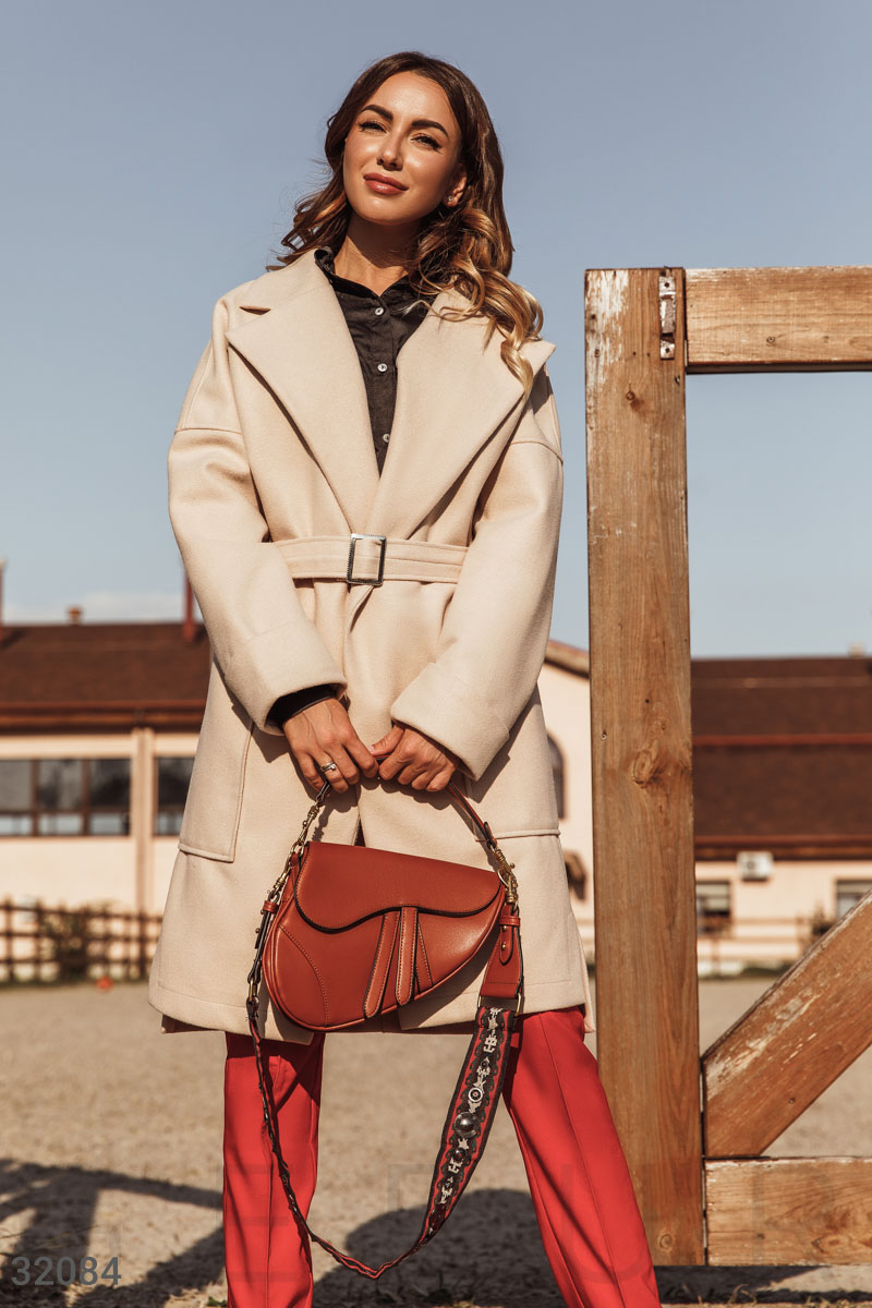 Аккуратная сумка оригинальной формы с широким съемным плечевым ремнем и ручкой из эко-кожи: одно небольшое отделение с боковым карманом на молнии.