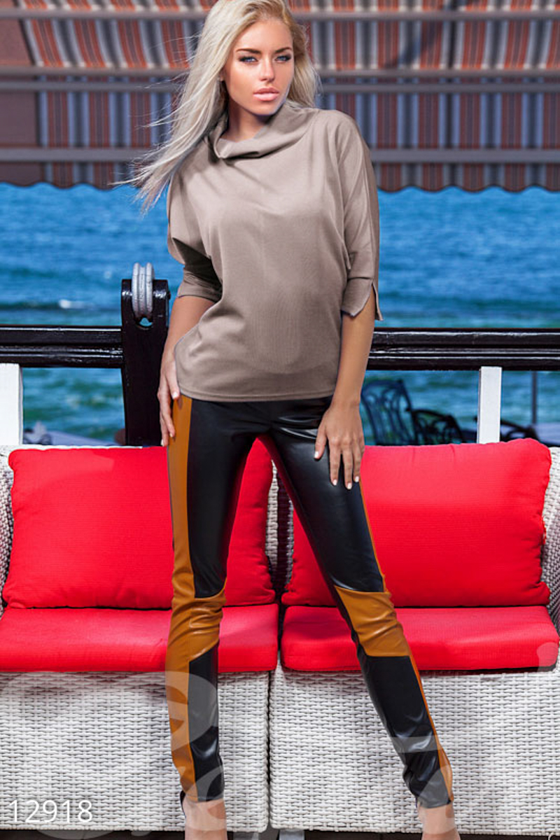 Трикотажный реглан с цельнокроеным рукавом ¾ и широким воротником-стойка.