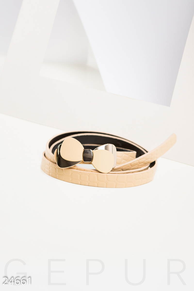Яркий ремешок с пряжкой-бантиком, выполненный из фактурной эко-кожи.